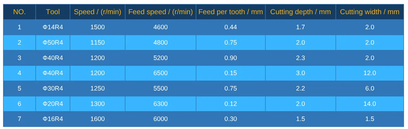 This targeted application of high-speed cutting technology in die and mold processing provides a basis for personalized design, as shown in Table 2.
