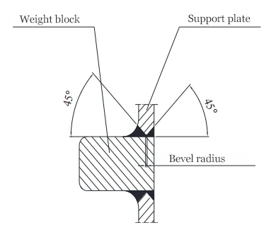 Since the load-bearing block is a critical load-bearing component, the welds connecting it to the support plate must be fully penetrated.